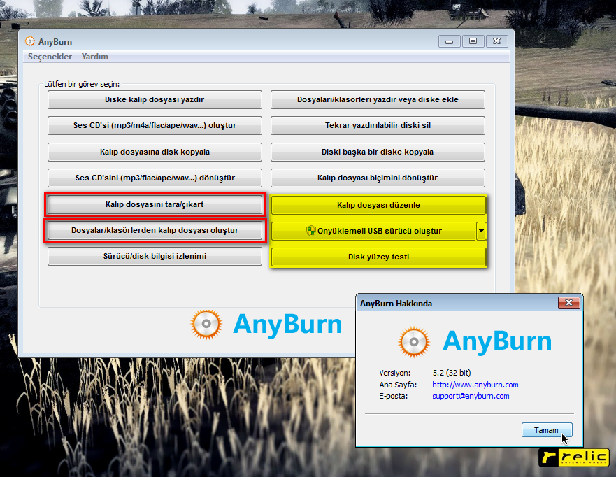 AnyBurn Türkçe ve portable alternatif olarak kullanılanilir