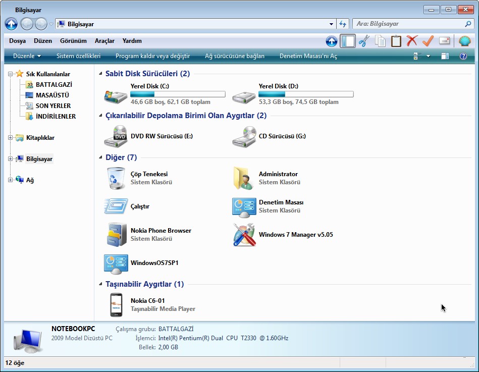 - Dosya gezgini altında Ağ simgesi yeralmasın Burada