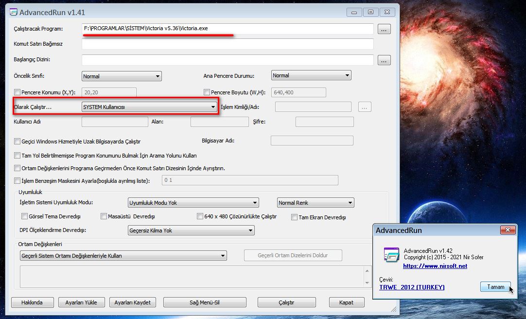Windows Görev Yöneticisinde ;